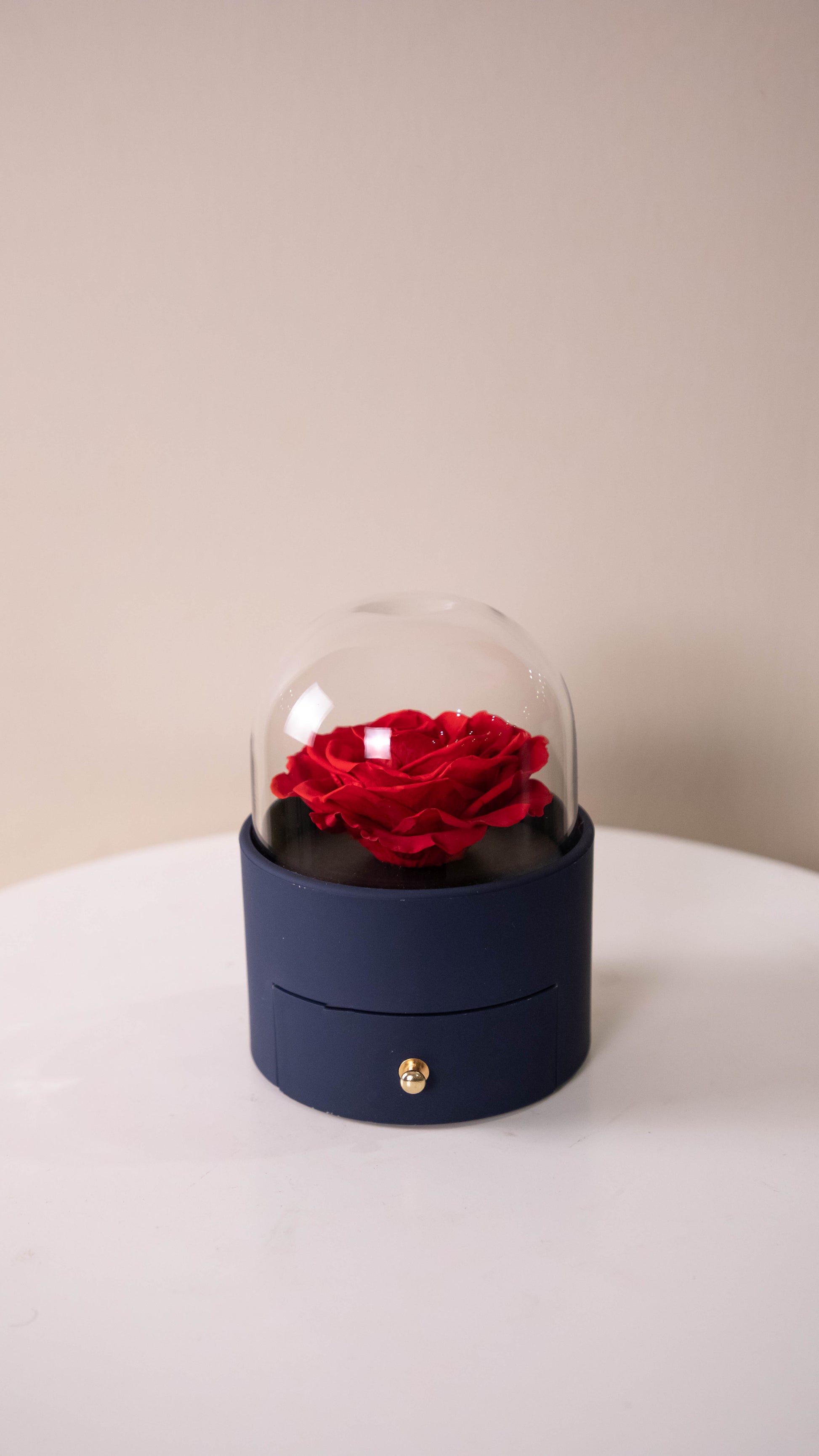 Love necklace with a preserved rose. The necklace has a gem in the middle, you have to project light to see 'I love you' in 100 different languages. (In a dark room, direct a little light to the middle gem of the necklace and let it reflect to a nearby wall to see the different languages.)